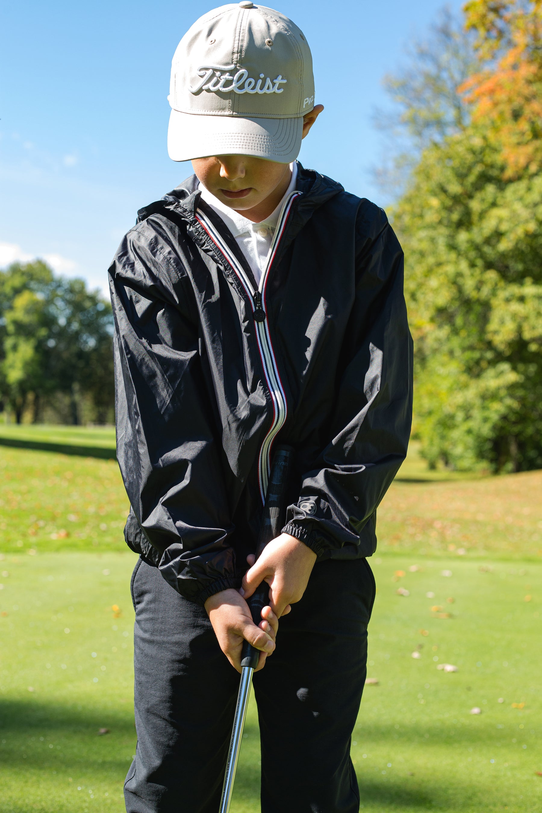 Kids Black Full Zip Packable Rain Jacket and Windbreaker